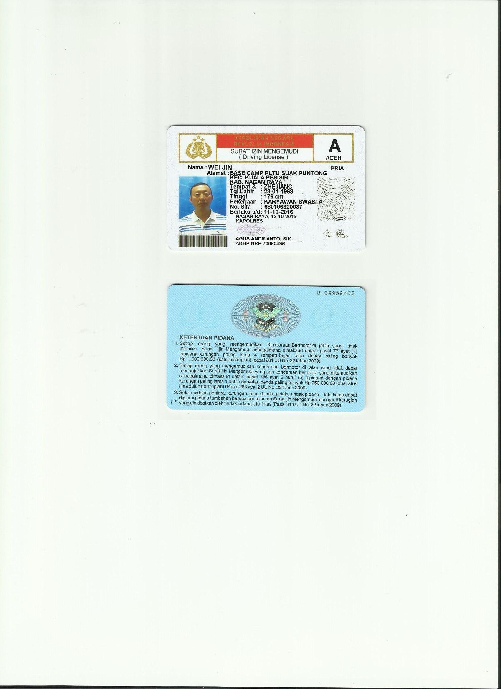 印尼駕照翻譯模版-咸陽(yáng)車管所認(rèn)可