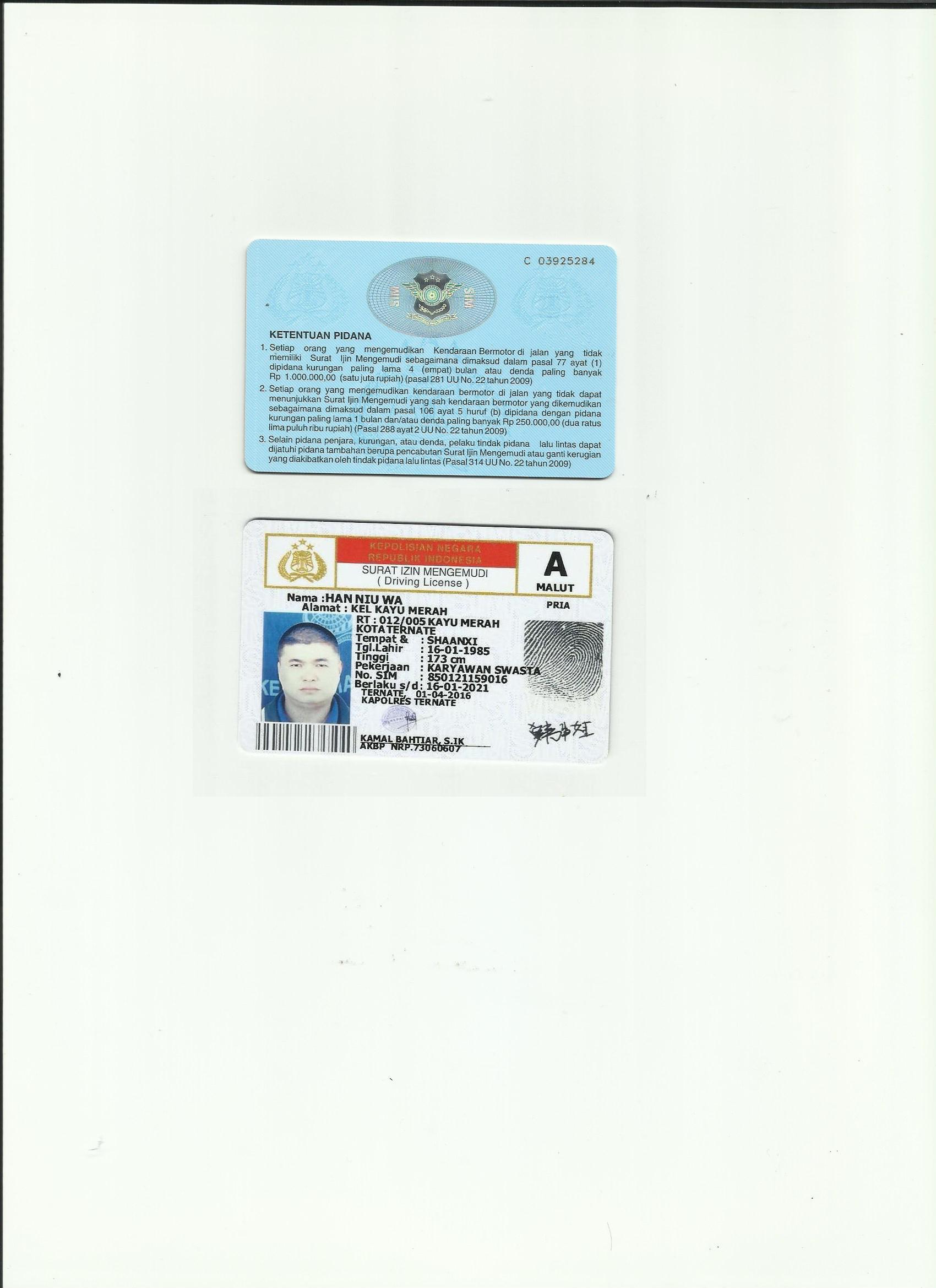 印尼駕照翻譯模版-咸陽市車管所認可翻譯機構(gòu)