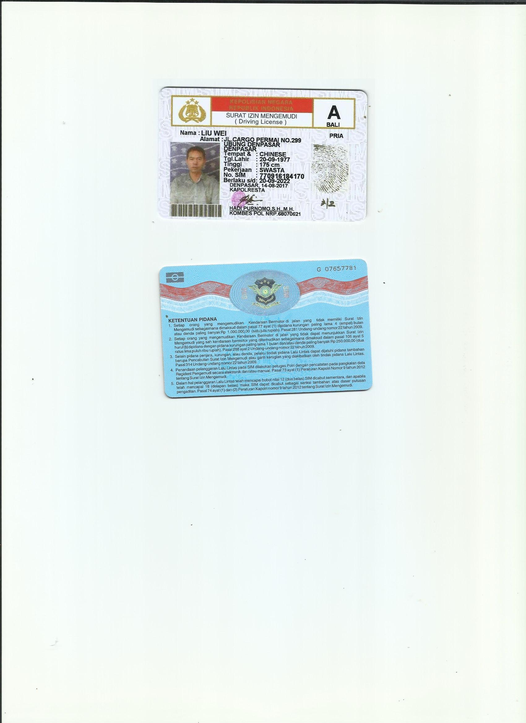 咸陽駕照翻譯公司 咸陽車管所指定翻譯公司 印尼駕照翻譯模版