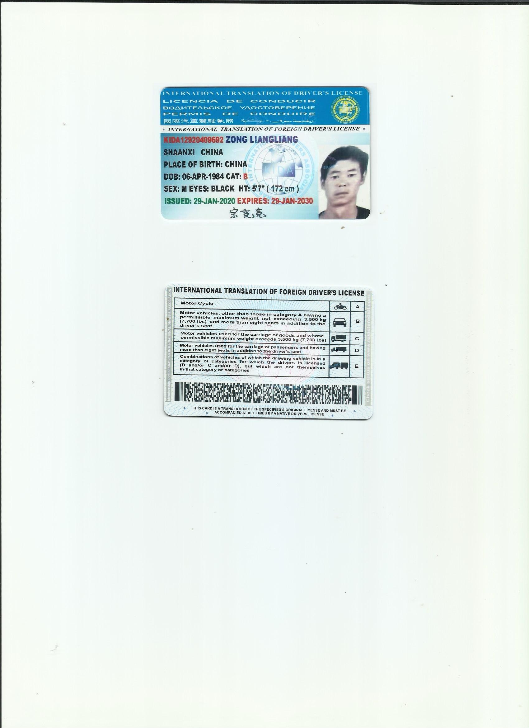 咸陽駕照翻譯公司 咸陽車管所指定翻譯公司 國際駕照翻譯模版