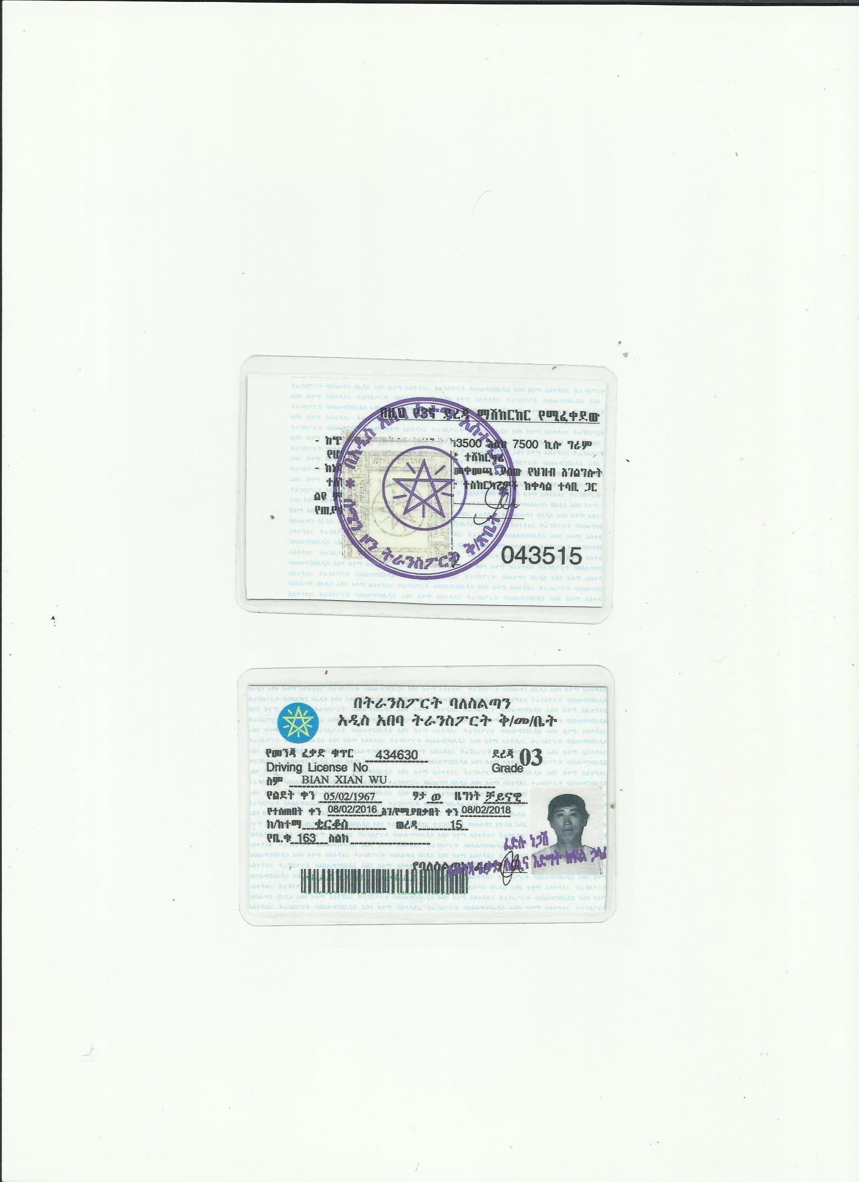 埃塞俄比亞駕照翻譯模版-咸陽外籍駕照專業(yè)翻譯-車管所認可