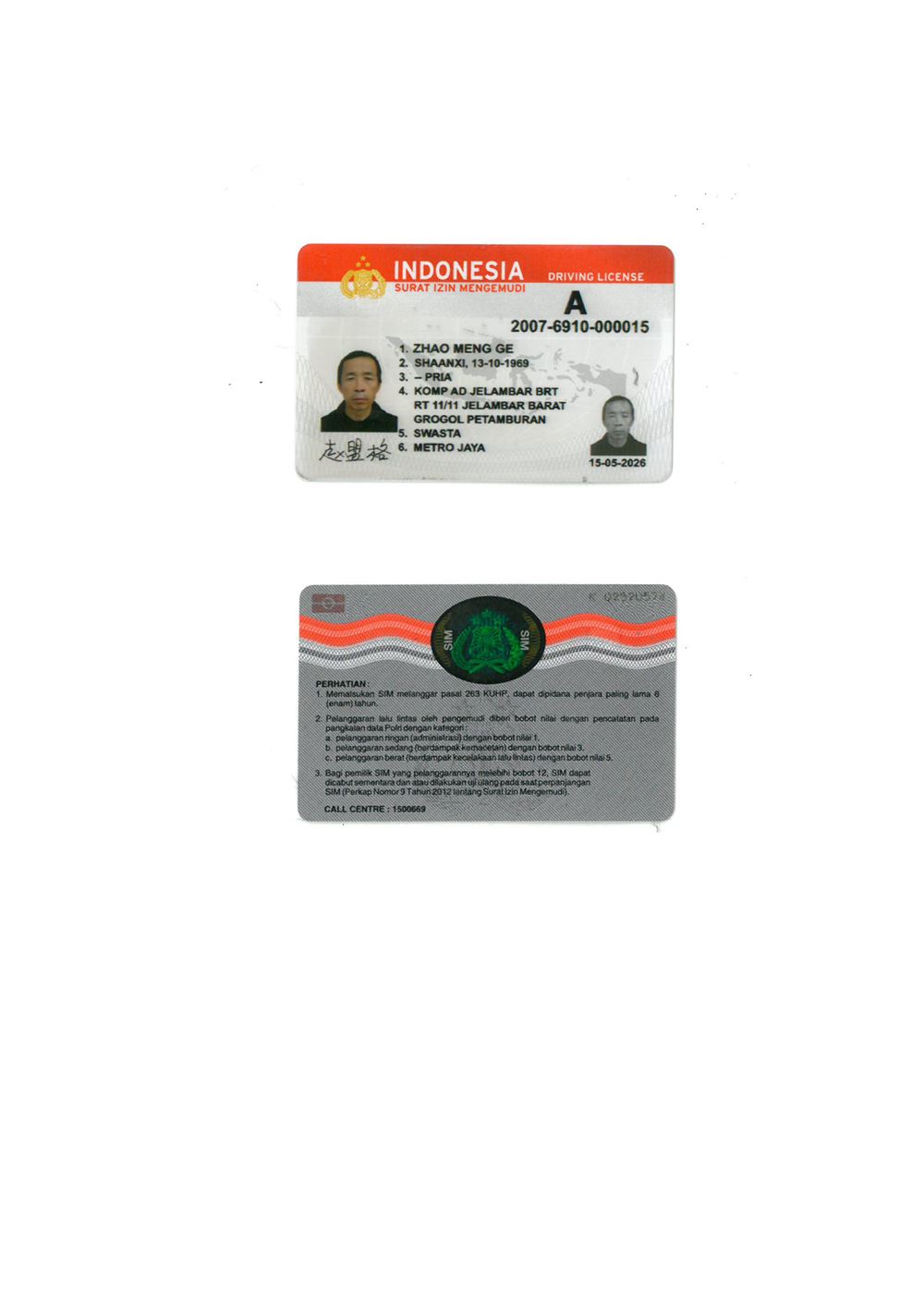 咸陽證件翻譯蓋章 成績單翻譯 戶口薄翻譯 駕照翻譯 印尼駕照翻譯模版