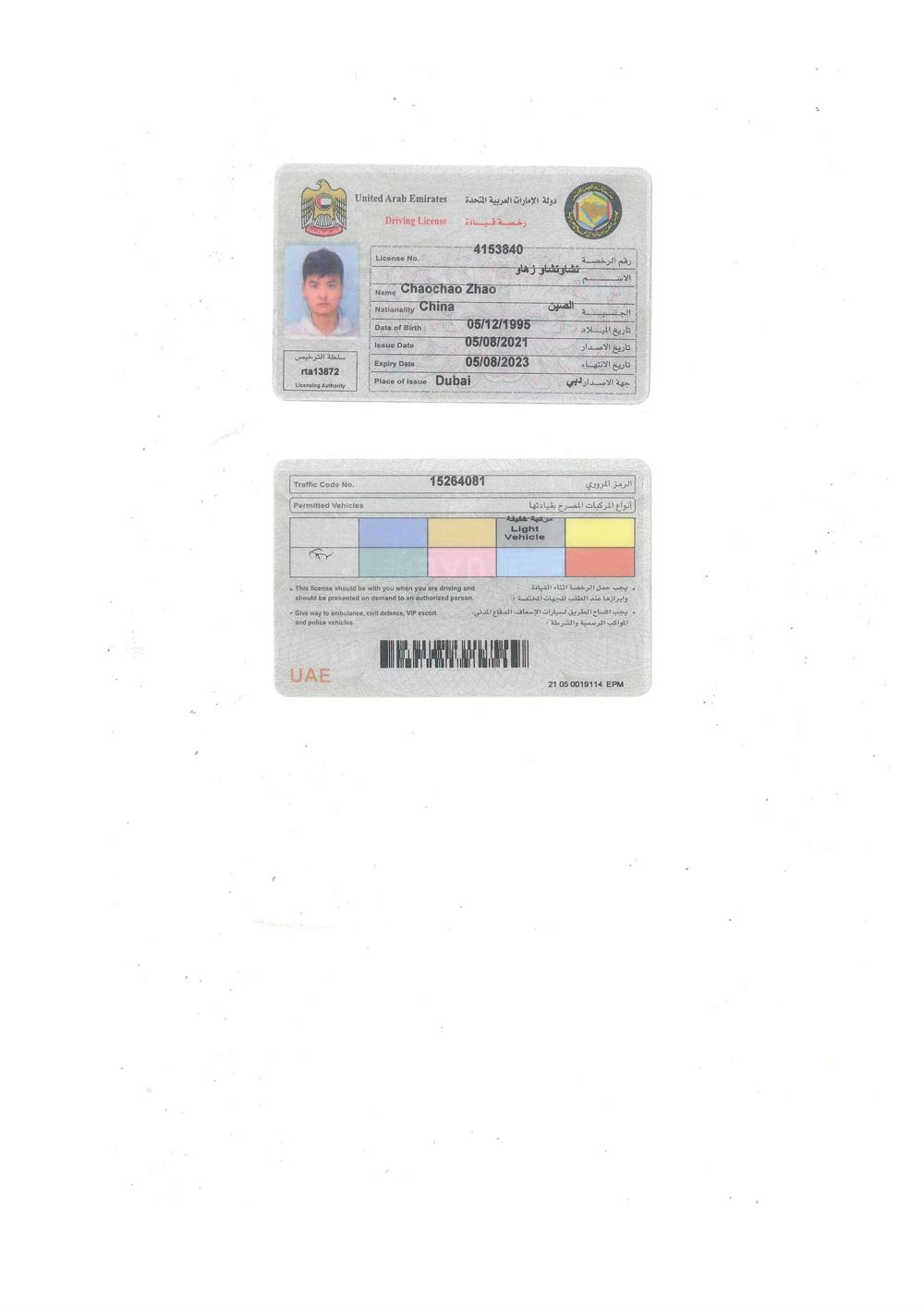 咸陽證件翻譯蓋章 成績單翻譯 戶口薄翻譯 駕照翻譯 阿聯(lián)酋駕照翻譯模版