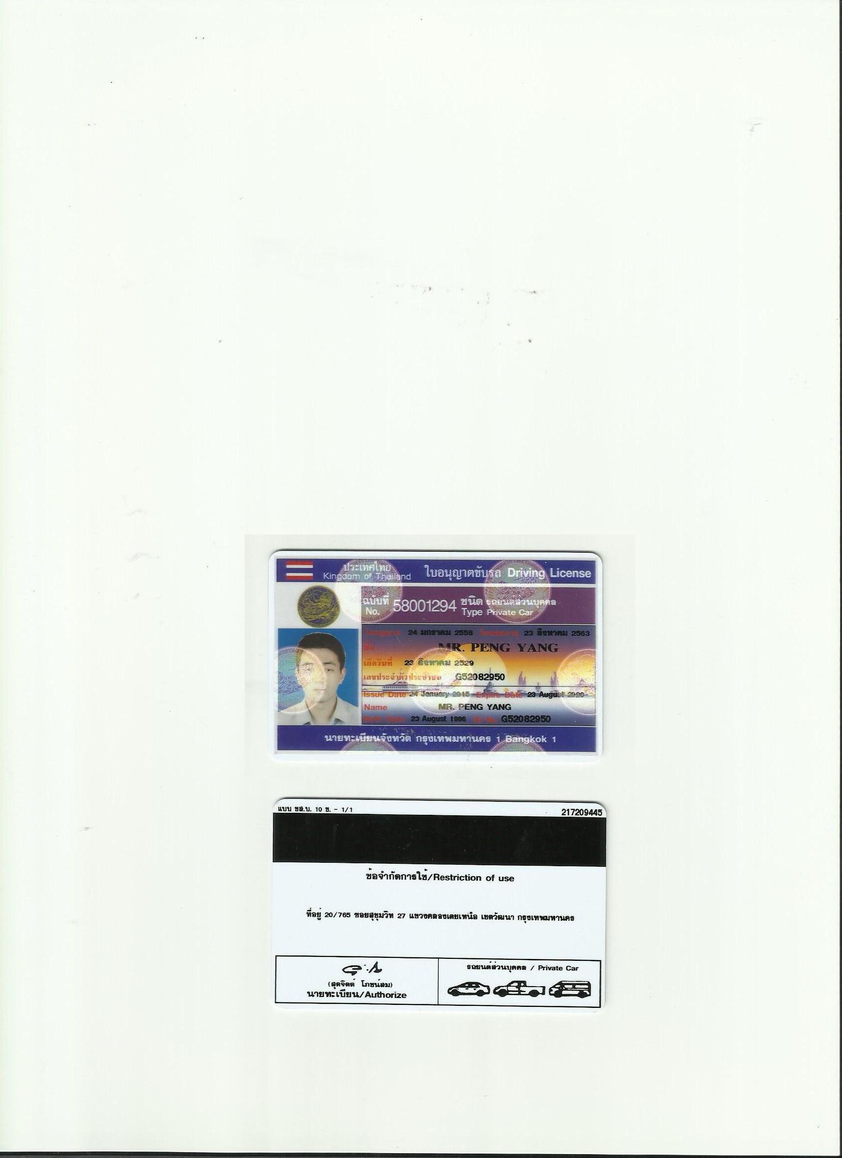 泰國駕照翻譯模版
