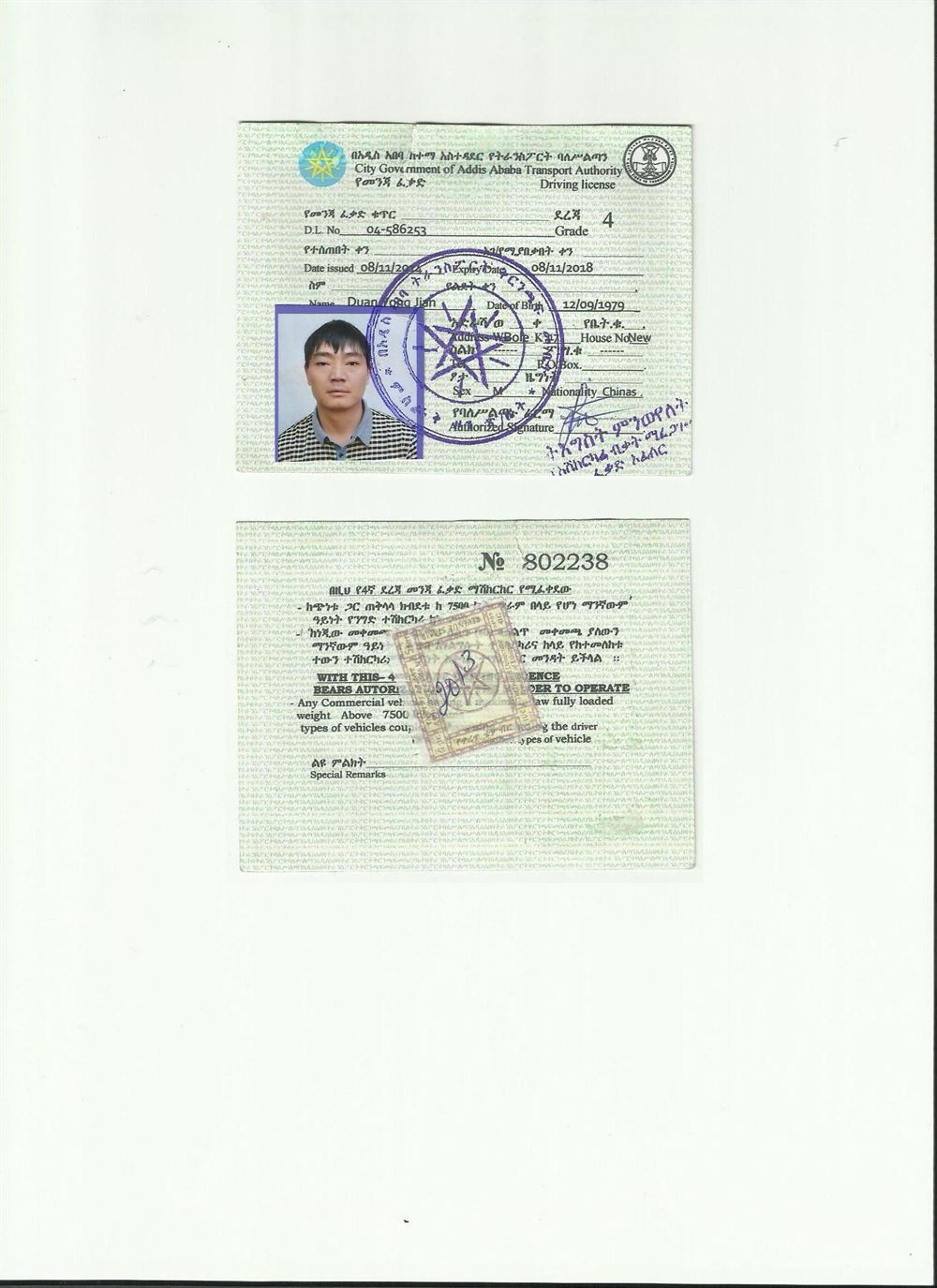 埃塞俄比亞駕照翻譯模版