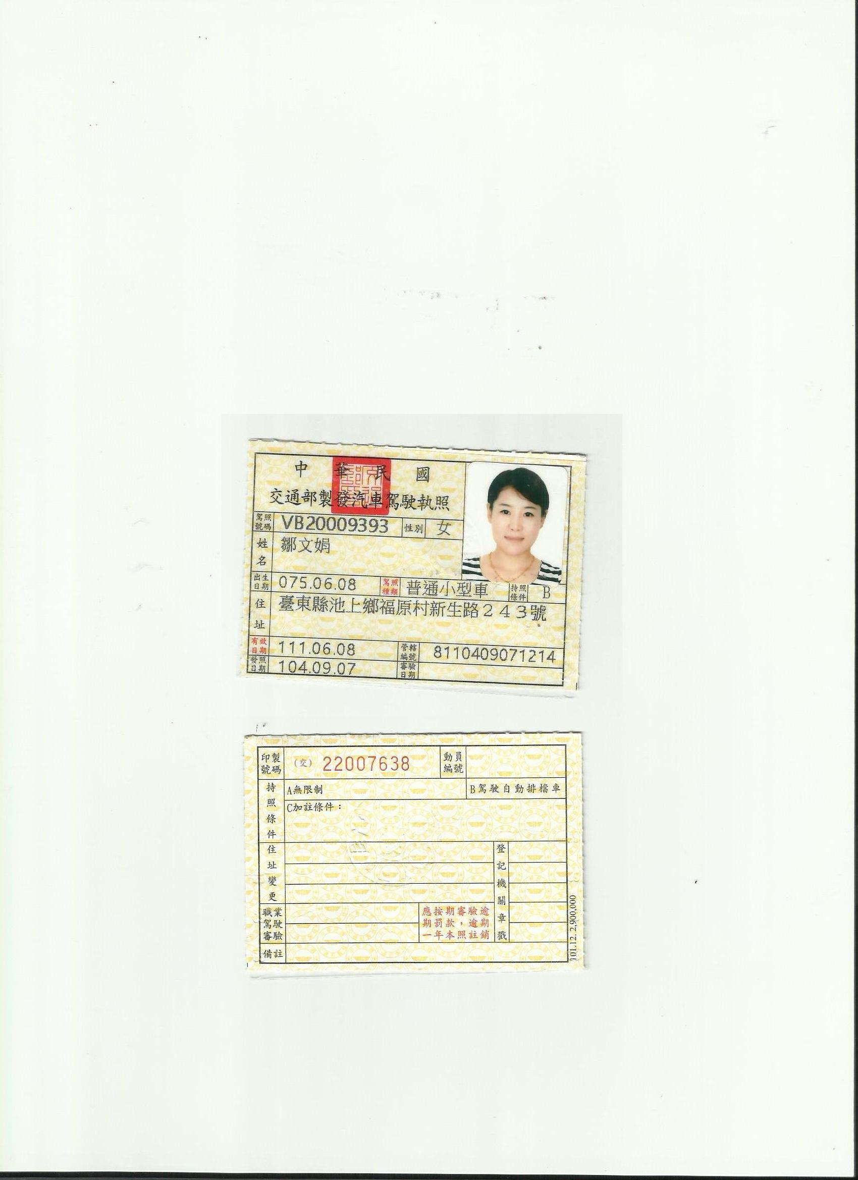 臺灣駕照翻譯模版