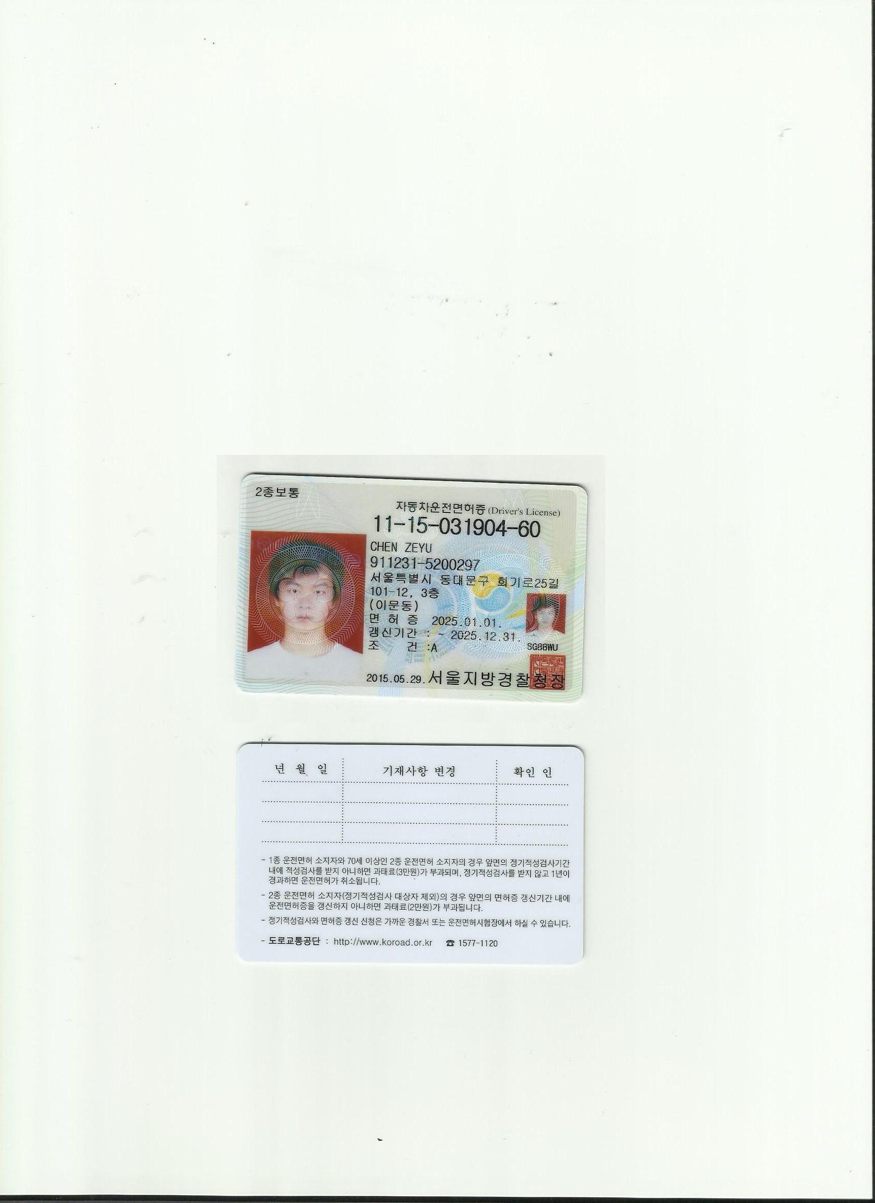 韓國駕照翻譯模版
